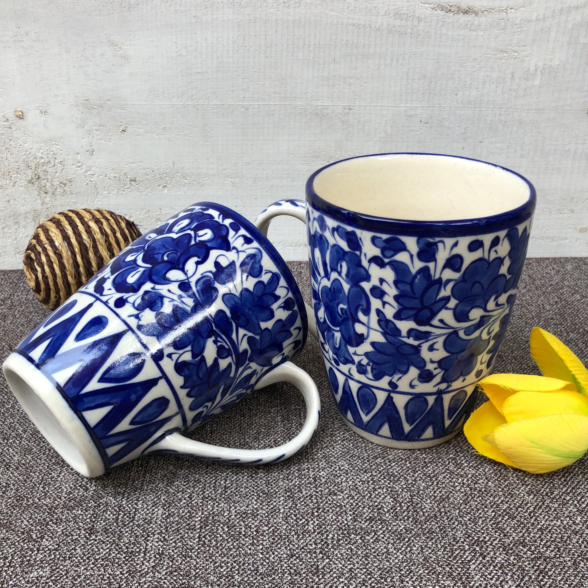 This beautiful mug is from our serina family combined with ocean blue undertone. The mug also has a little more space for its wide bottom. Produced in Multan. This mug can be used for serving tea, coffee and any other drink.