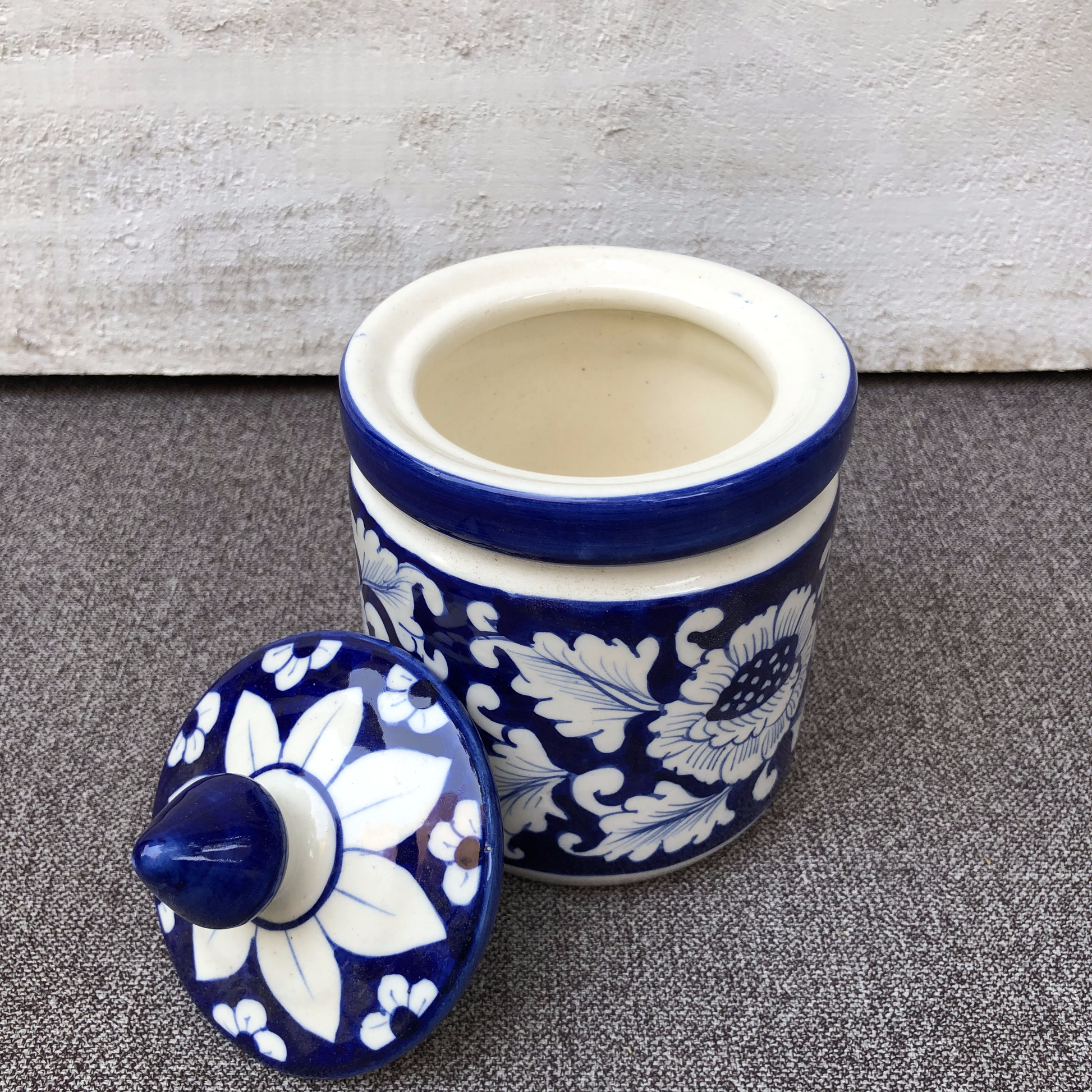 Recalling the fine artistry of our old traditions. This ceramic jar is carefully hand-painted by skilled artisans in Multan. This jar can be used for pickles, Jams, sauces, cookies, and different homemade condiments. Please note that this jar is NOT airtight.