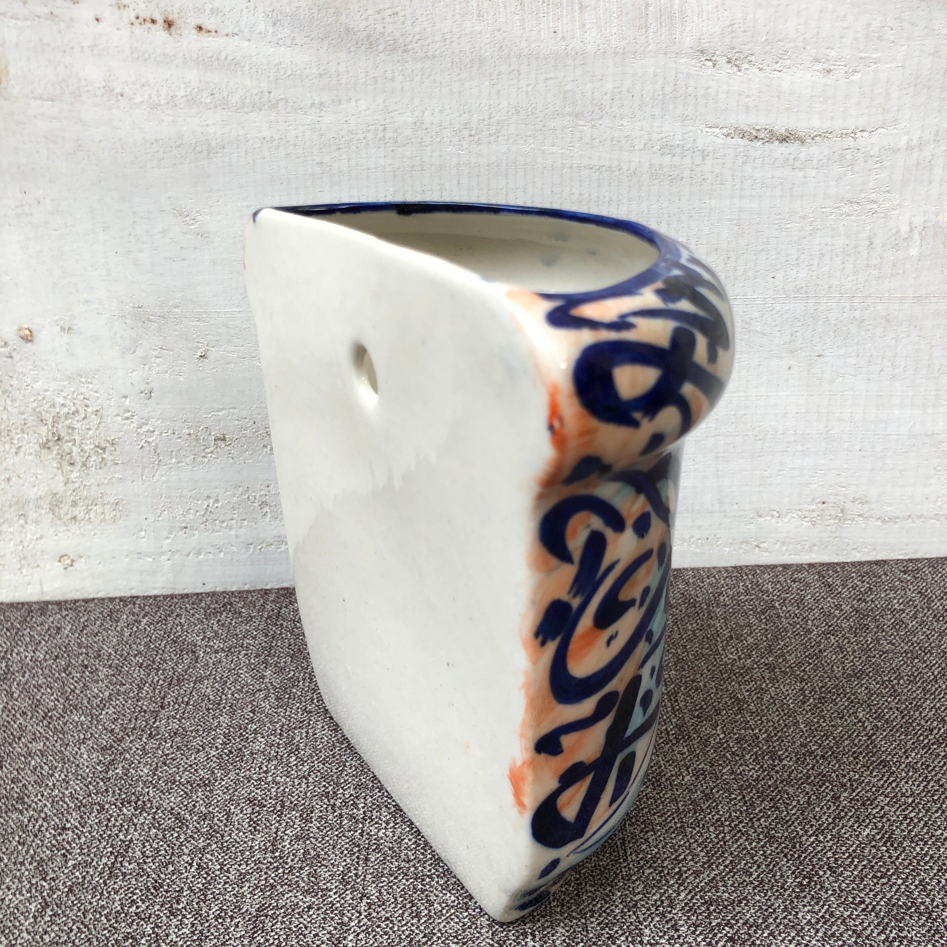 This planter offers a traditional and appealing look. As it features a blue undertone on the base and a multi-colored pattern on top. Perfect for any table setting or decor. Handcrafted by the artisans of Multan. This planter can be used for cutting flowers, artificial plants, and mud plants for decoration purposes.